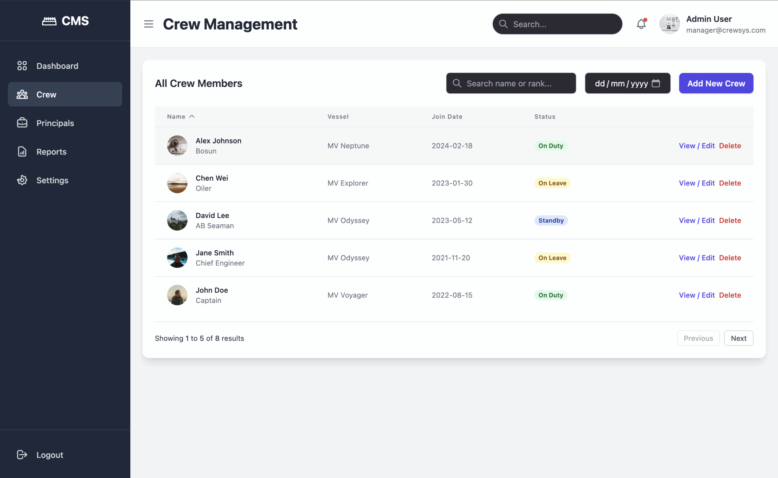 Aplikasi Crew Management System adalah platform digital yang dirancang untuk membantu perusahaan mengelola tenaga kerja operasional (crew) secara efisien, terpusat, dan berbasis data. Dengan sistem ini, perusahaan dapat melakukan pengaturan jadwal kerja, monitoring kehadiran, pencatatan kompetensi, hingga manajemen rotasi kru di berbagai lokasi atau kapal. Aplikasi ini memastikan bahwa setiap kru yang bertugas memiliki kualifikasi yang tepat, jadwal yang jelas, dan dokumentasi yang lengkap untuk mendukung kinerja operasional secara maksimal.